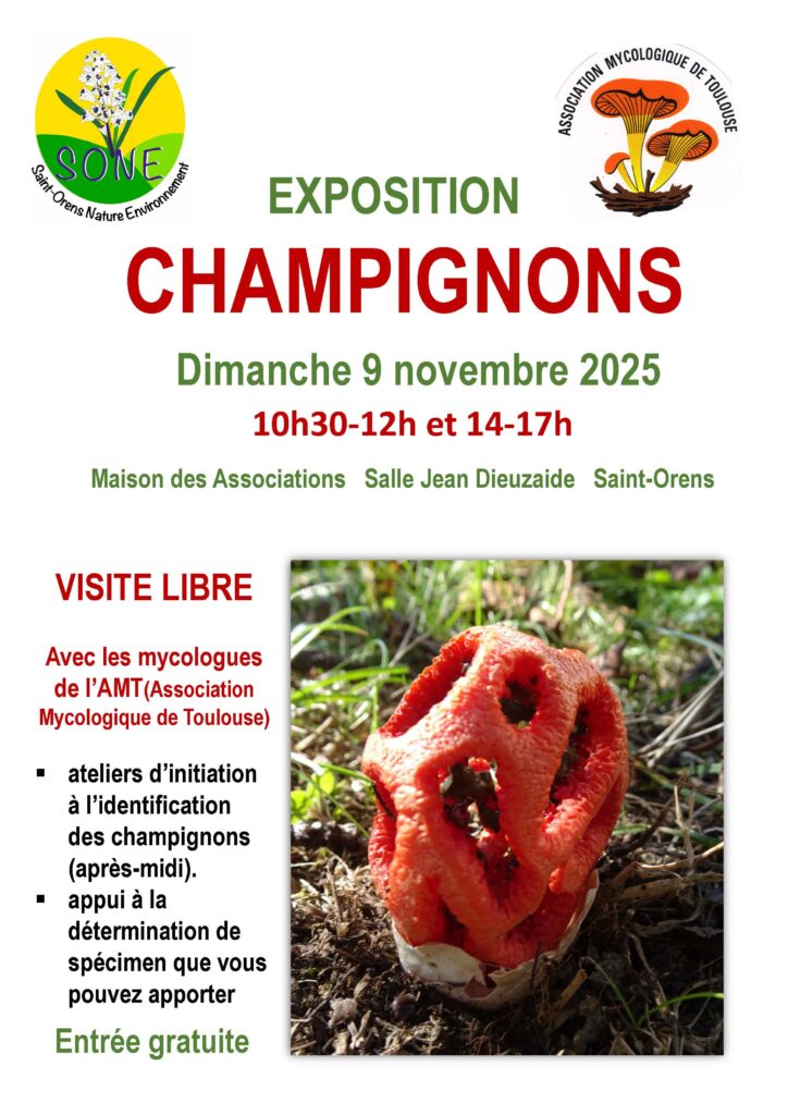 Notre Exposition Champignons annuelle organisée en partenariat avec l’AMT (Association Mycologique de Toulouse) aura lieu le dimanche 9 novembre (10h30-12h; 14h-17h) à la Maison des Associations, salle Jean Dieuzaide (Saint-Orens). L’exposition est ouverte à tous et gratuite